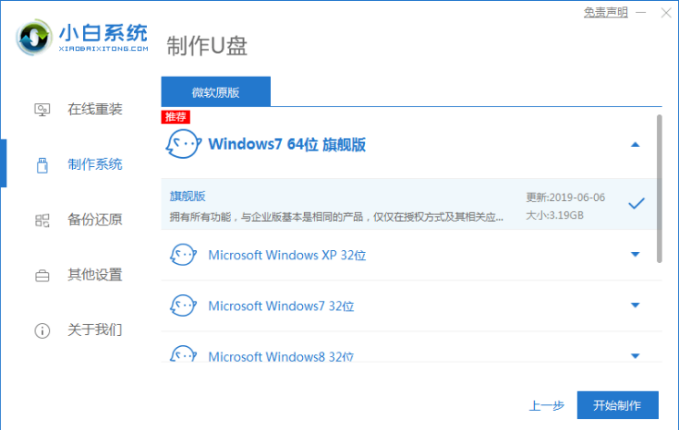2、選擇我們自己想要的系統版本,點擊開始制作即可。