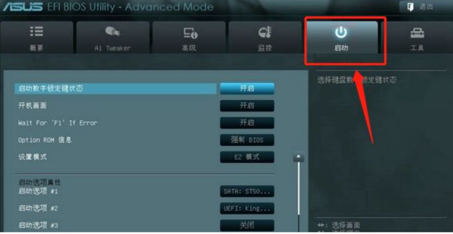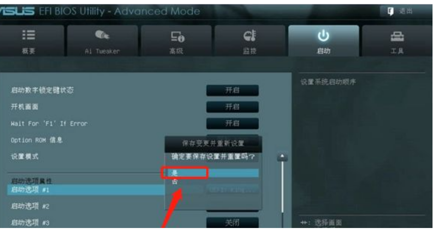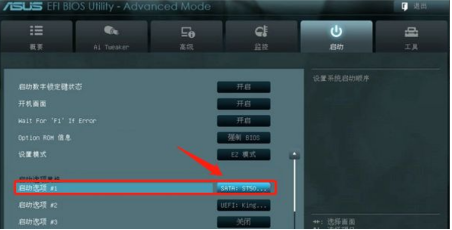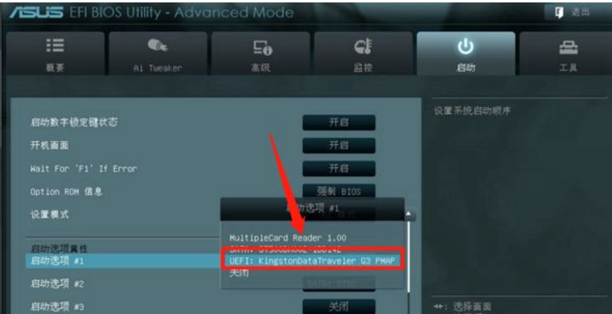 4、切換到啟動選項#1,可以用鍵盤上下鍵切換。