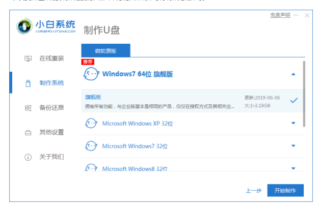 2、選擇需要制作的系統,點擊下方的開始制作。