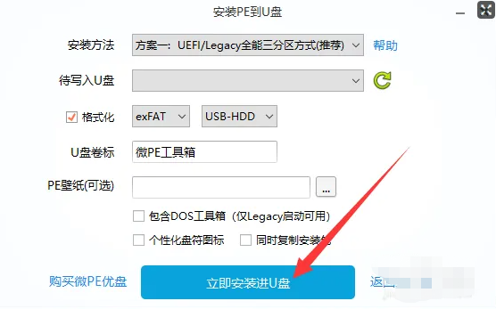 2、進入到工具箱的制作界面,點擊移動硬盤選項,并且按向導提示默認進行創建。