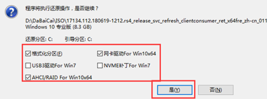 6、勾選“網卡驅動”以及“USB驅動”復選框,防止重啟后出現上不了網或者鼠標用不了的情況,點擊“是”并等待重啟。