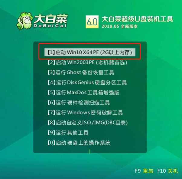 4、選擇【1】Win10X64PE(2G以上內存)。