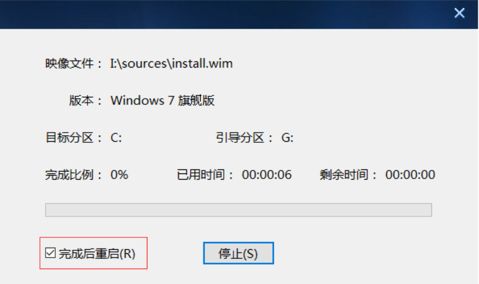6、 等待安裝后軟件會提示重啟電腦,選擇【完成后重啟】。注意:重啟前必須拔掉U盤,避免重新進入晨楓pe界面。