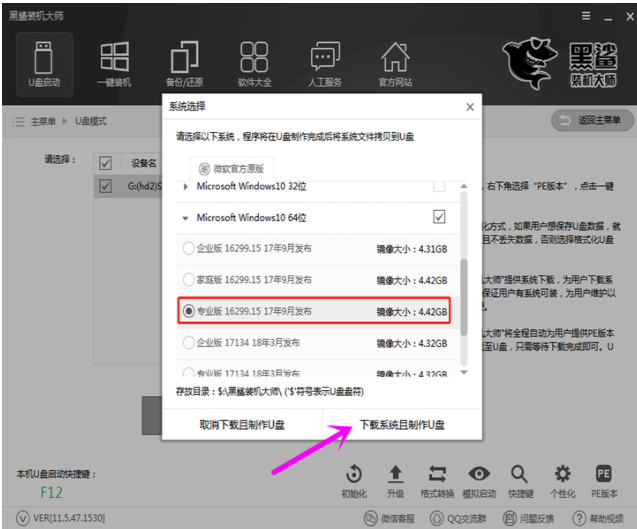 步驟三:在系統鏡像的選擇頁面,選擇Win10系統,單擊“下載系統且制作U盤”。