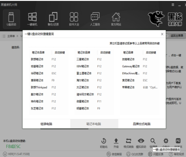 步驟六:重啟電腦設置U盤啟動進入PE重裝系統以后,U盤啟動快捷鍵可以在U盤啟動盤制作工具里面查詢哦。
