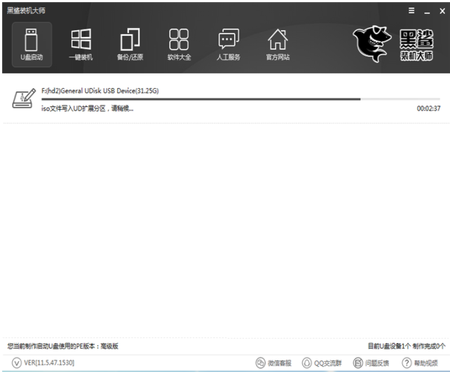 步驟一:先下載黑鯊裝機大師軟件,把U盤插到電腦USB接口,運行黑鯊裝機大師軟件,單擊U盤模式。