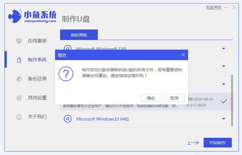1、下載并安裝小魚一鍵重裝系統,隨后打開軟件,進入制作系統頁面,選擇制作u盤,點擊開始制作。