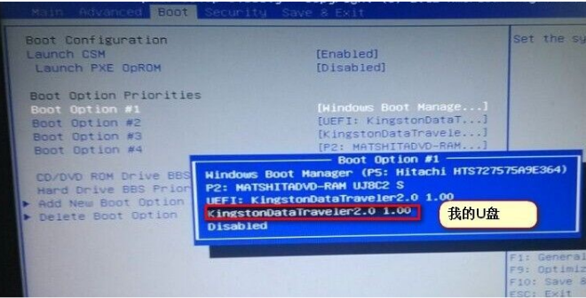 步驟四:在“boot”中找到“bootoption#1“按回車鍵即可。我們找到u盤。選擇完后按F10保存退出。重啟電腦就可以按照我們的選擇用u盤啟動了。