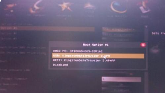 4、選擇【Boot Option #1】按回車鍵,選擇含有USB的U盤,按回車鍵開展改動。