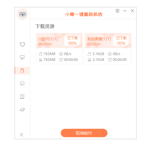 1、下載并安裝小熊一鍵重裝系統工具,選擇啟動U盤界面。插入U盤。點擊制作U盤啟動盤開始制作。