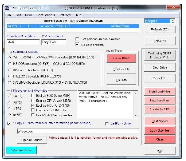 如果您想要一個高度可定制且功能豐富的可啟動 USB 創建器,RMPrepUSB 就是您正在尋找的。它允許您創建幾乎任何類型的可啟動媒體。有一個用于測試、分區、支持多種圖像格式、快速格式化、自定義引導加載程序、文件系統和 QEMU 仿真器的選項。