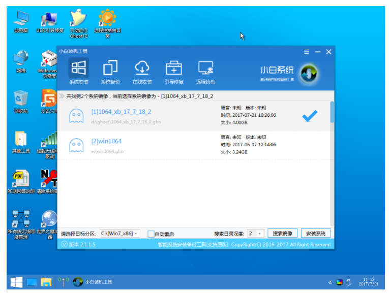 8、選擇U盤里的系統鏡像,“目標分區”選擇系統盤,一般為C盤。
