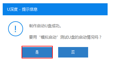 5、u盤啟動盤制作完成后,會彈出新的提示窗口,對此我們點擊“是”,對制作完成的u盤啟動盤進行模擬啟動測試。