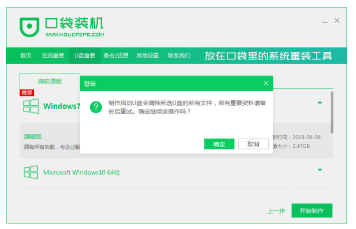 4、確定U盤中無重要數據后點擊確定。