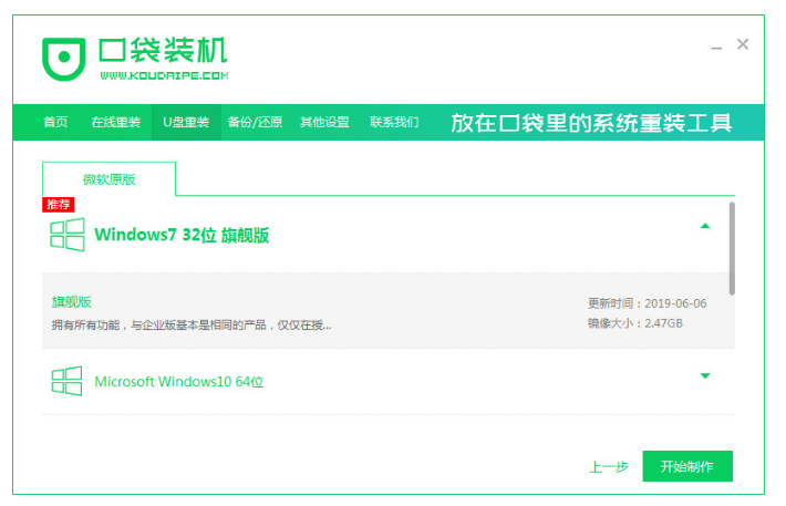 3、選擇要安裝的系統版本,點擊開始制作。