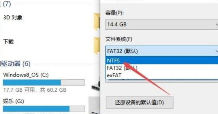 4、選擇ntfs格式。