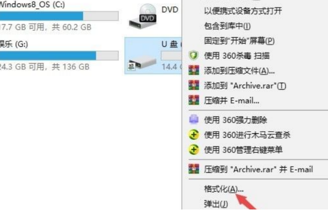 2、選擇格式化u盤。