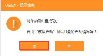 4、待制作完成后,我們可點擊“是”對制作好的u盤啟動盤進行模擬啟動測試,再退出。