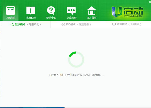 1、在電腦上打開u啟動裝機版,將u盤插入電腦usb接口并靜待軟件對u盤進行識別,保持當前默認參數設置,直接點擊“開始制作”。