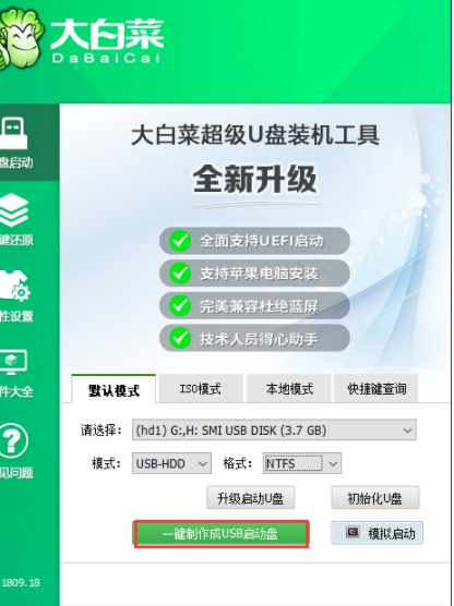 2、然后點擊USB-HDD,選擇NTFS,然后點擊一鍵制作USB啟動盤。