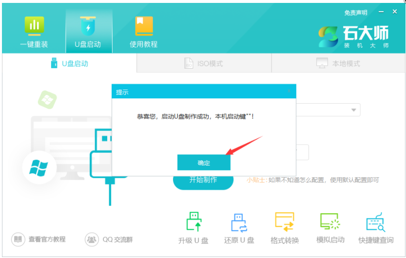 8、提示制作完成,點擊“確定”。