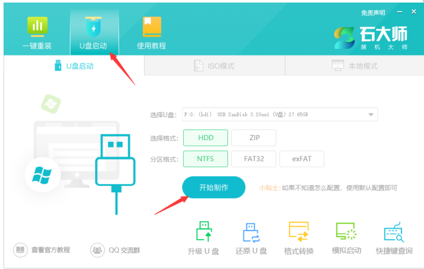 2、選擇“U盤啟動”點擊“開始制作”。