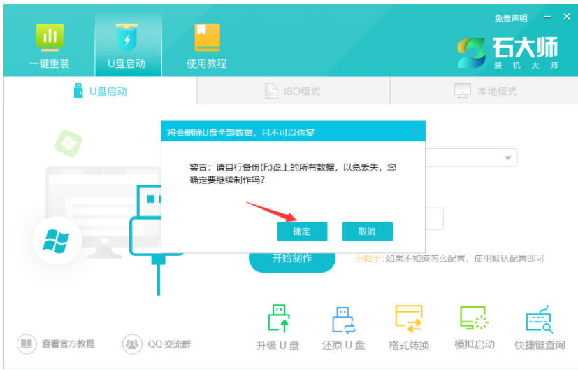 4、U盤內無重要資料的話點擊“確定”。