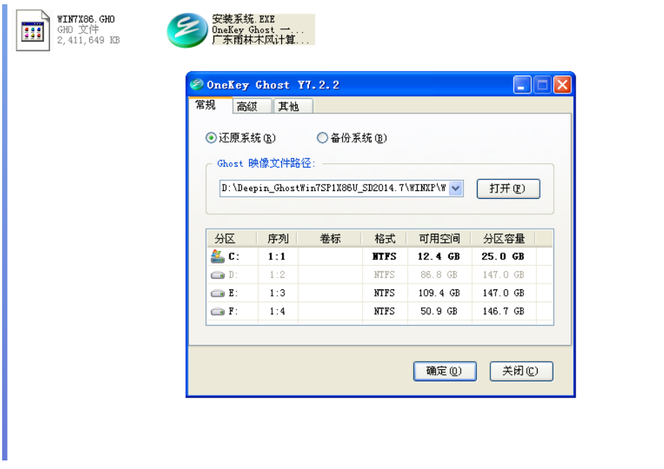 3、進入winpe系統,然后打開”系統安裝工具“,依次點擊”還原系統“-”系統文件的存路徑“-”選擇C盤“-”最后點擊確定“。