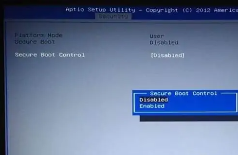1、重啟電腦進入BIOS界面,禁用安全啟動;