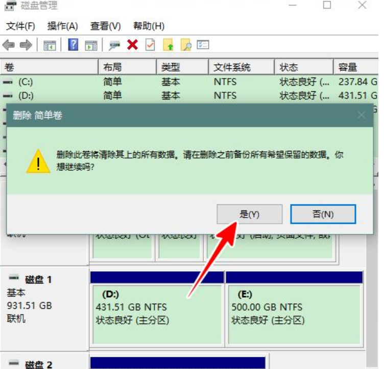 3、在彈出的警告提示框中點擊“是”。