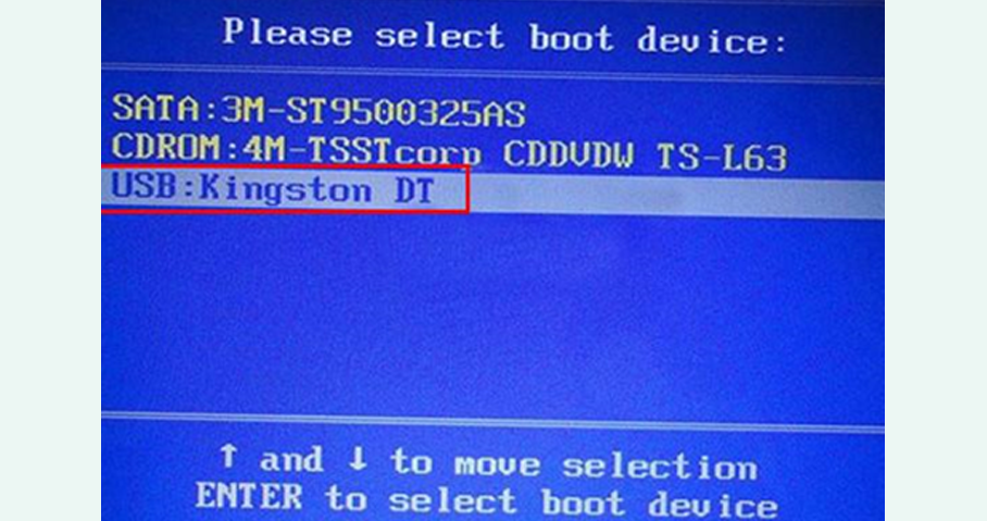 2、這里選擇U盤選項后,按回車鍵再進入下一步,帶有“USB”字樣的選項就是U盤選項。