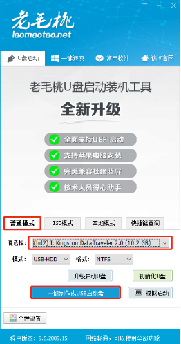 軟件版本:老毛桃9.5.2009.15,4G以上空間u盤