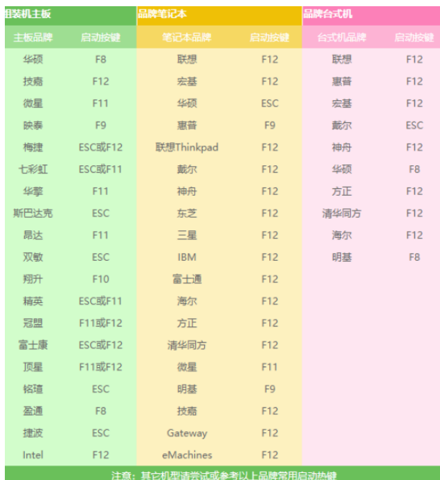 5、電腦重啟后,開機時按熱鍵進入 Bios 或者快速引導菜單,一般多為 F12。有些可能是 Esc、Del、F2 之類的。具體可以參考下圖。