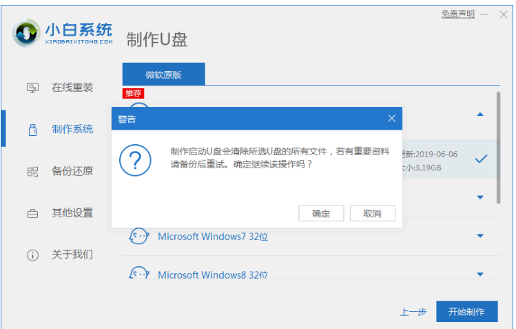 3、制作啟動盤會清理 U 盤上所有的重要文件,請確認 U 盤中沒有重要文件,開始制作就可以了。