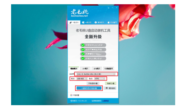 1、插入一個U盤,點開老毛桃軟件,點擊制作U盤。