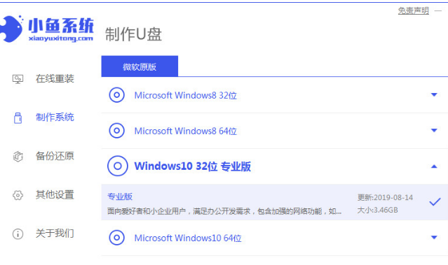 2、在這兒選擇需要制作的系統,選擇完成以后單擊旁邊的制作就可以。