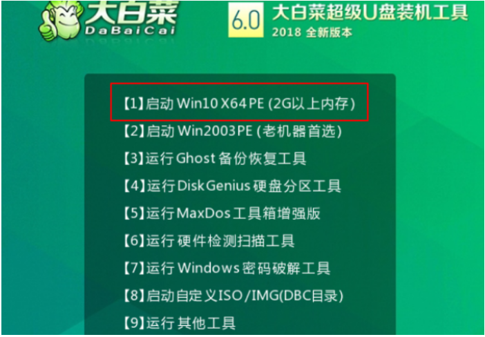3、這時電腦進入到U盤啟動盤安裝系統主界面,選擇選項一按回車。