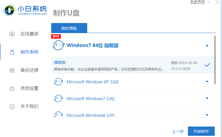 2、選擇自己需要的系統,點擊下面的開始制作就可以了。