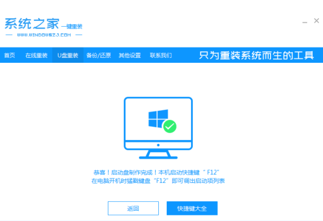 4、U盤工具制作完成,并安全退出U盤,再將U盤工具插入需要重裝安裝系統的電腦。
