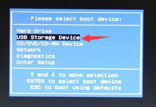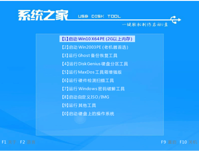 5、U盤插入需要重新安裝計算機后,重新啟動后立即連續按F12熱鍵,選擇我們的U盤進入【系統之家重裝】 PE界面,選擇[1]進入。