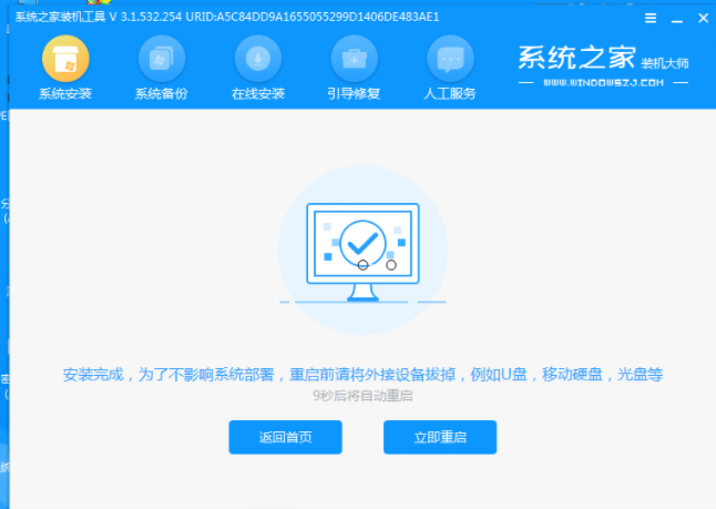 8、提示安裝已完成,退出U盤并重新啟動計算機。