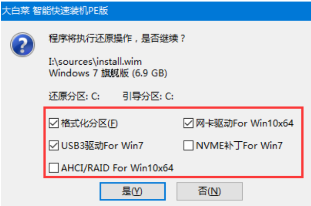 6、彈出程序將還原操作的提示窗口界面,勾選前三項,點擊“是”即可。