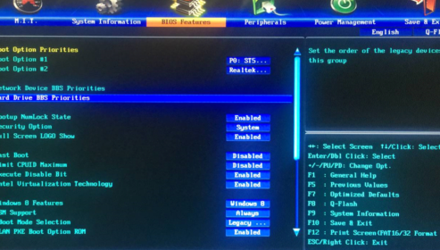 方法二:電腦開機按BIOS啟動鍵進入bios設置的方法,這里以技嘉主板B85M型號為例說明;在菜單中選擇BIOS Features選項,BIOS Features菜單下面一般會有Hard Drive BBS priorities選項,按回車鍵進入,里面有硬盤、u盤、網絡啟動等選項,將第一啟動修改為u盤啟動,按f10保存并退出。電腦會自動重啟進入PE