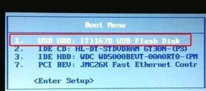 方法一:電腦開機后快速不停的點擊快捷啟動鍵,直到呼出選項框,選擇usb或U盤名稱的選項啟動