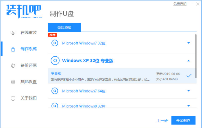 1、安裝裝機吧一鍵重裝系統軟件愛你,制作win7 u盤啟動盤;