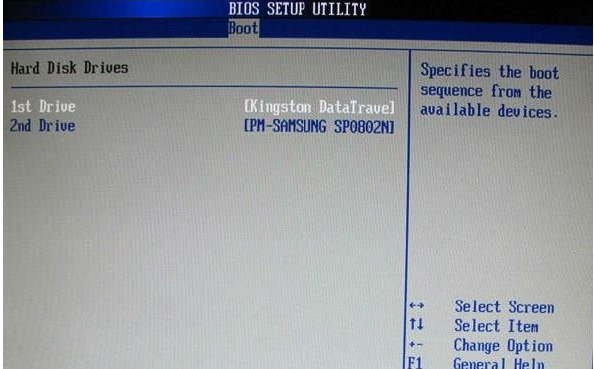 3、硬盤驅動器“Hard Disk Drives”選擇:選擇U盤為第一啟動設備“1st Drive”。