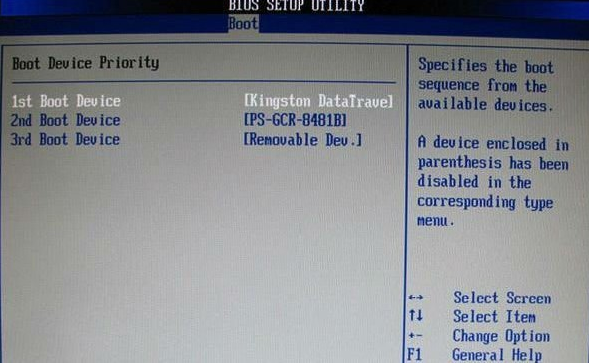2、在啟動優先級設備選擇(Boot Device Priority)u盤為第一啟動設備(1st Boot Device)。在的硬盤驅動器“Hard Disk Drives”里面還沒選擇U盤為第一啟動設備,那么這里就不存在和顯示U盤,但可以選擇移動設備“Removable Dev.”作為第一啟動設備。