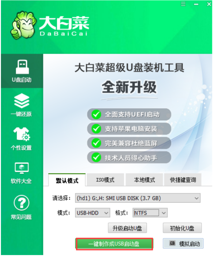 3、 鼠標點擊“一鍵制作成USB啟動盤”。