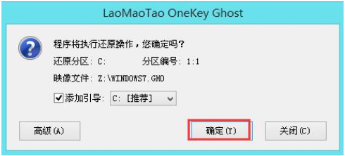 5、隨后會彈出一個詢問框,提示用戶即將開始安裝系統。確認還原分區和映像文件無誤后,點擊“確定”。