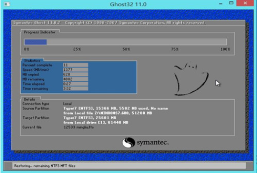 6、程序開始釋放系統鏡像文件安裝系統,只需等待操作完成并自動重啟電腦。